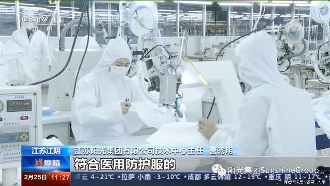 2月3日,阳光集团紧急决定拿出八分之一产能,将三条高档服装生产线突击改造成为防护服生产专线,紧急生产防护服,保障防护物资供应。